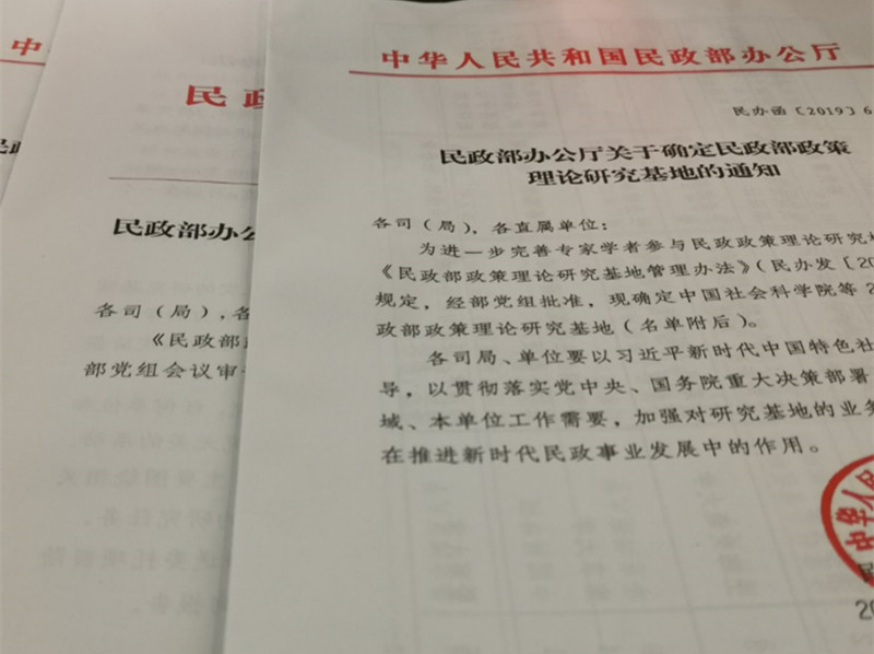 会上,根据《民政部办公厅关于确定民政部政策理论研究基地的通知》(民办函[2019]6号),民政部政策研究中心主任王杰秀代表民政部向全国42家部属政策理论研究基地和合作单位授牌。PM体育官网成为全国首批“民政部政策理论研究基地合作单位”。